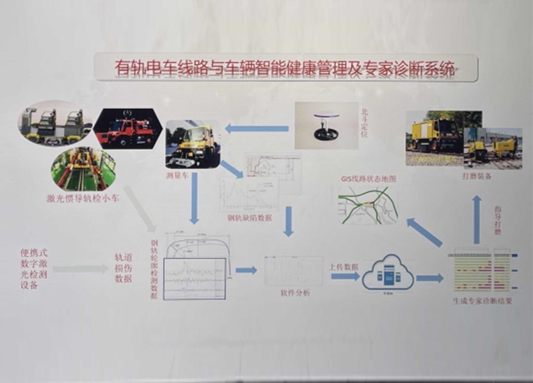 應用高精度北斗導航時空信息、開發出具備自主知識產權的智能檢測裝備,源自不同的智能檢測裝備的數據經過數據中心整理、歸并、解算,生成過程性分析數據和直觀的判斷結果,同時所有過程和結果數據上傳到云端,最終對線路狀況提供運營維保的建議和意見